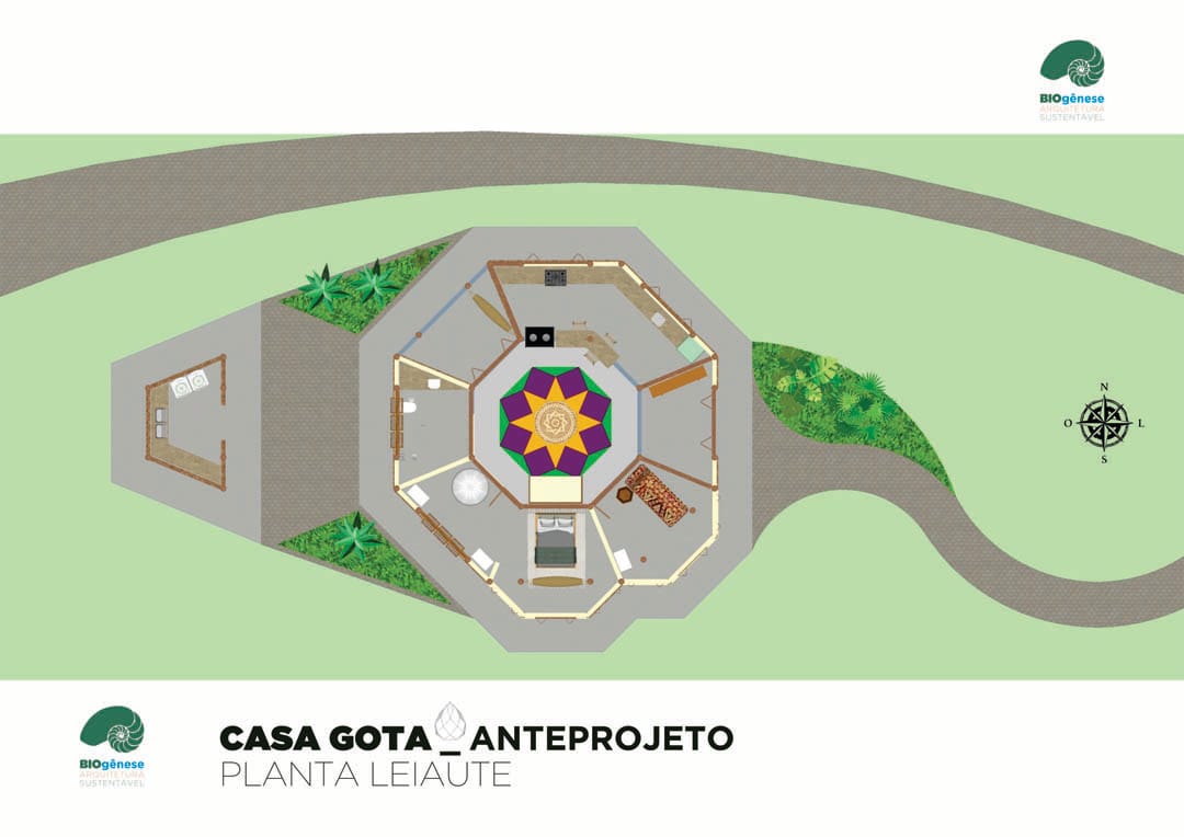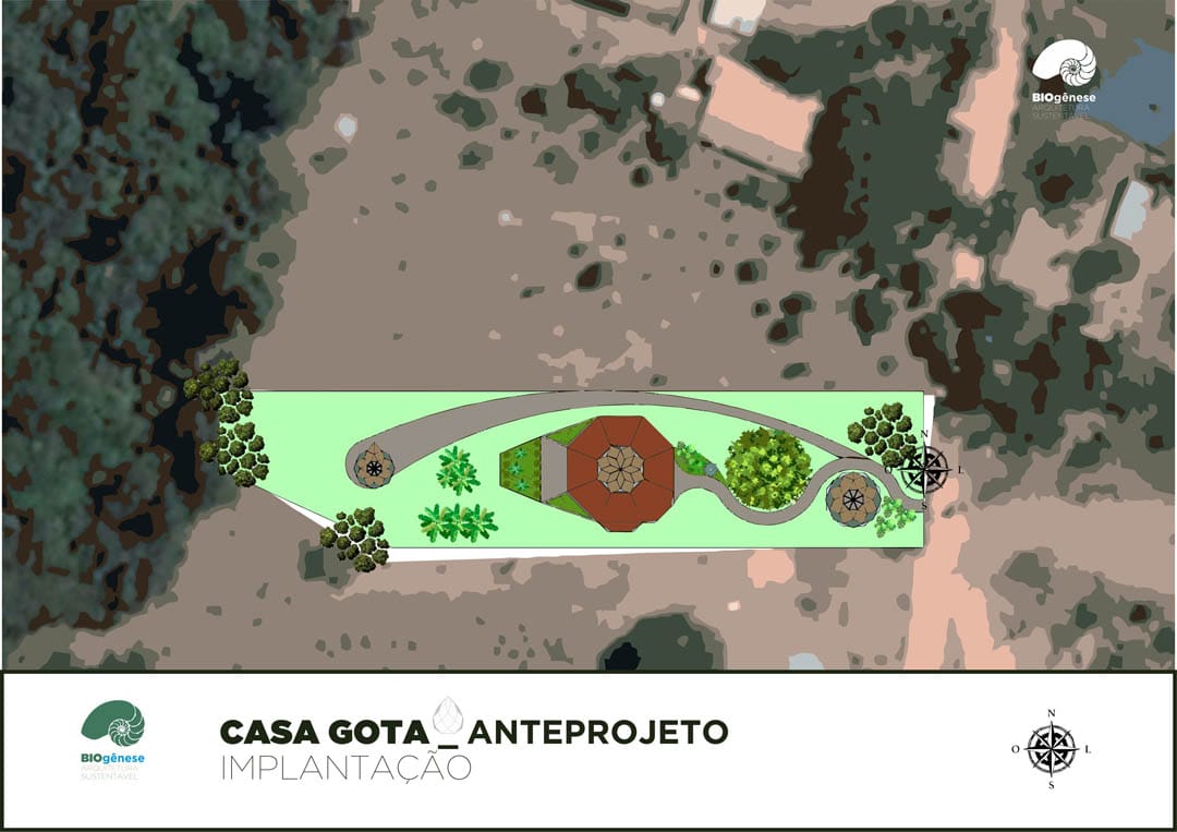 A casa se encontra localizada no eixo central do terreno – área mais ensolarada. O modelo está alinhado com as direções cardeais e colaterais.