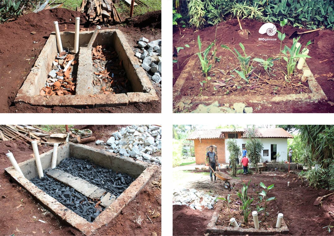 Sistema de Saneamento Ecológico para tratamento e fitoremediação das águas provenientes do vaso sanitário.